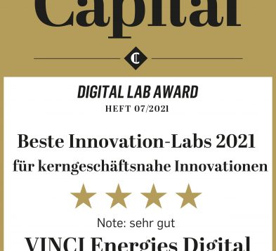 Als Programm zur KI-Nutzbarmachung ist Leonard Teil des Leistungskatalogs von VINCI Energies Digital, das mit dem Digital Lab Award 2021 (r.) kürzlich als eine der drei besten Digital Innovation Units (DIUs) im deutschsprachigen Raum ausgezeichnet wurde – und von dem alle Konzernbereiche und VINCI-Marken Actemium, Axians und Omexom sowie die Unternehmen von Building Solutions profitieren. Die KI-Förderung wurde 2018 als Teil der vier Beschleunigungs- und Unterstützungsprogramme von Leonard ins Leben gerufen, um die komplexen Anforderungen bei der Entwicklung von KI-Systemen zu bewältigen sowie Kompetenzen und Infrastruktur für praxisorientierte Projekte bereitzustellen. Das Hauptziel ist die nutzenbringende Implementierung von KI-Technologien zur Errichtung und zur Bewirtschaftung von Gebäuden und Infrastrukturen der Zukunft.